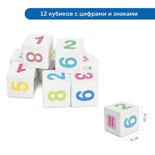 12 кубиков с цифрами и математическими символами