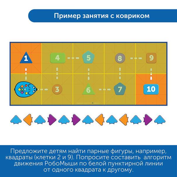 Математические коврики с комплектом аксессуаров - идеальное дополнение к программируемому роботу РобоМышь (Мышиный код). Сектора полей, карточки и линейка соответствуют шагу РобоМыши.