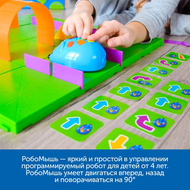 РобоМышь — яркий и простой в управлении программируемый робот. Умеет двигаться вперёд, назад, поворачиваться, не имеет дисплея и не требует никаких дополнительных устройств для работы.
