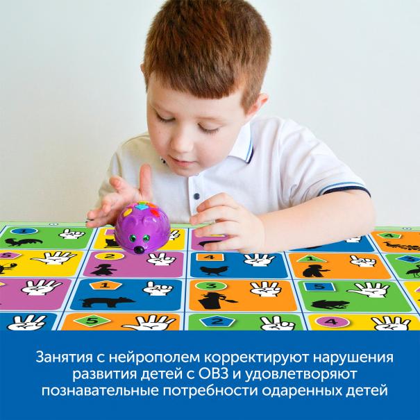 Занятия с нейрополем и РобоМышью помогают скорректировать нарушения развития детей с ОВЗ и удовлетворить познавательные потребности одарённых детей. Развить фонематический слух для обучения чтению и письму, освоить базовые математические понятия, улучшить внимание, мышление, воображение и речь.