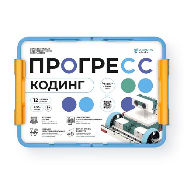 АВРОРА Robotics Прогресс® Кодинг — комплексное образовательное робототехническое STEAM решение для практического закрепления школьных знаний по Информатике в основной школе. Решение представляет собой дополнительный ресурсный набор, расширяющий возможности платформы «АВРОРА Robotics Прогресс» в рамках формирования и развития навыков программирования. Оно включает в себя дополнительные элементы для конструирования, уникальную электронику и специально разработанные учебно-методические материалы.