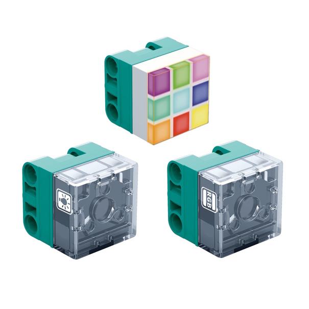 - Программируемые компоненты: дополнительные большой мотор и датчик касания/давления, датчик освещенности, датчик цвета, 9-пиксельная RGB-матрица.