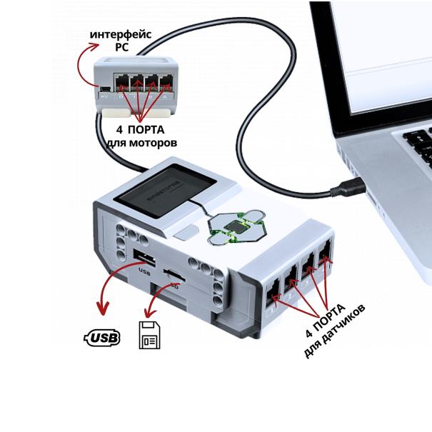 Программируемый микрокомпьютер EV3 является сердцем и мозгом роботов, построенных на платформе MINDSTORMS Education EV3.