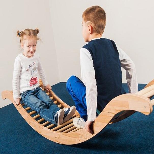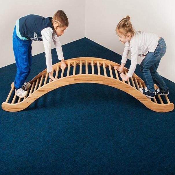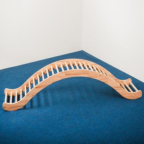С этой необычной лестницей можно придумать много занятий - сидеть, стоять, лежать, качаться на ней одному или вдвоем. Установив ее как мост, дети могут ползать под ней или ходить и бегать по верху.