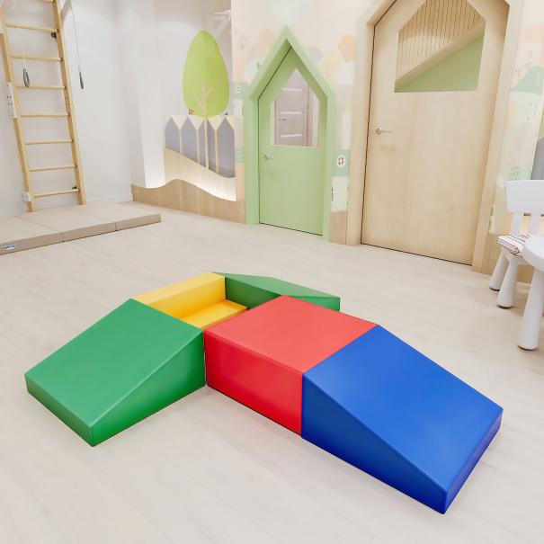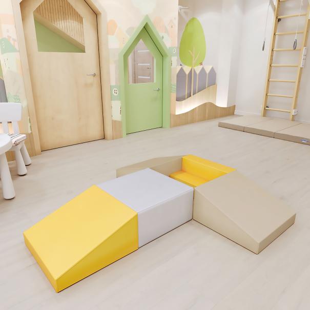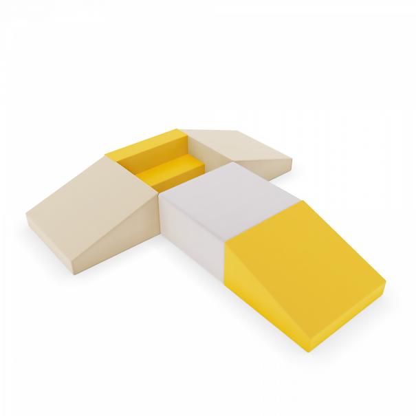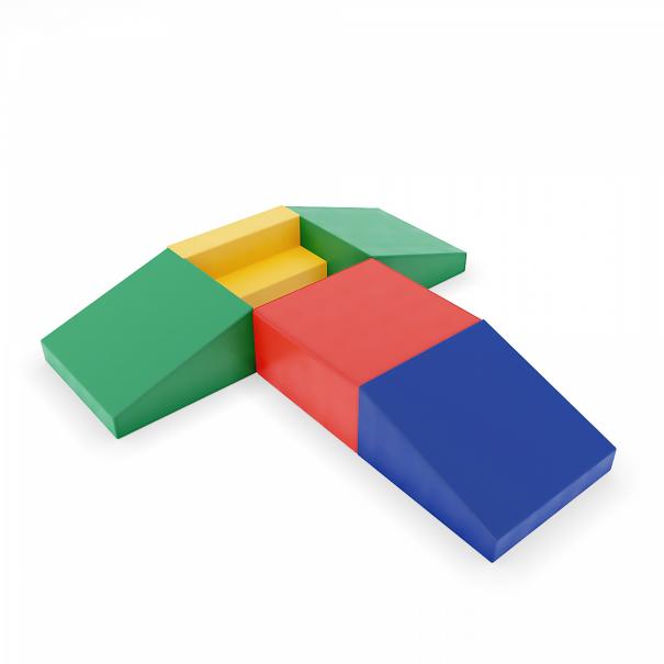 Количество элементов: 5.Прямоугольник, мм: 500 x 500 x 250 - 1 шт.Ступень, мм: 500 x 250 x 250 - 1 шт.Трапеция, мм: 500 х 500 x 250 - 3 шт.Материал: поролон, винилискожа.