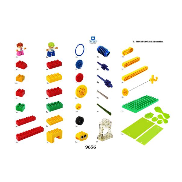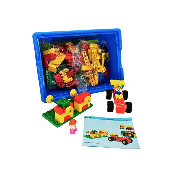 В наборе вы найдете большой выбор деталей: пластины, оси, приводные ремни, колеса обычные с резиновым покрытием и зубчатые колеса используются для передачи движения. Блоки разных размеров, цветов и форм (квадратные, прямоуголные).