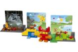 Этот увлекательный и легкий в использовании набор побуждает детей творчески рассказывать и придумывать истории. Дети придумывают сюжет, опираясь на декорации в виде 5 двусторонних карточек, которые служат фоном к рассказываемой истории. Малыши смогут научиться создавать полноценные сказки, состоящие из трех завершенных частей (начала, середины и конца), или описывать определенную сцену истории. Набор также можно использовать и для свободного творчества.
