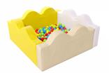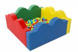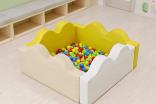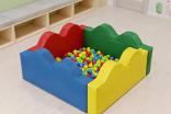 Сухой бассейн с шариками «Волна» - необычный бассейн с волнистыми бортами для детской комнаты или дачного участка. Сухой бассейн собирается из отдельных элементов, которые крепятся друг к другу с помощью липучек. Мягкие бортики в форме волн и такой же мягкий мат, выполняющий роль дна, обеспечивают малышу полный комфорт и безопасность во время игры. Дно и стенки бассейна, изготовлены из поролона и обтянуты качественной износостойкой винилискожей. Вместо воды такой резервуар заполняется пластмассовыми шариками (входят в комплектацию 300 шариков), «плавая» в которых дети развивают координацию движений, мелкую моторику и получают полезный расслабляющий массаж всего тела. Помогает малышу развивать мелкую моторику, знакомиться с цветами и объёмами предметов. Габаритные размеры 1400 х 1400 x 400 мм. Отлично моется. Вес с упаковкой 12,5 кг.