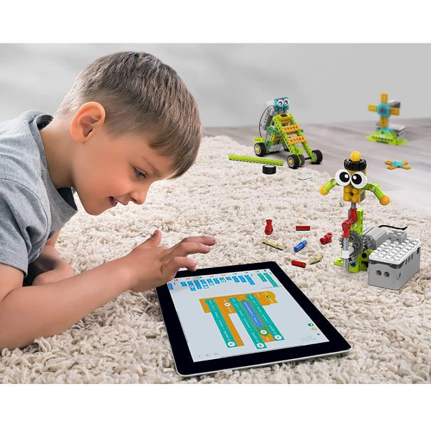 - Программируемые компоненты: 5-портовый СмартХаб со встроенными программируемыми светодиодами, 2 малых мотора, гироскопический датчик, 2 датчика расстояния.