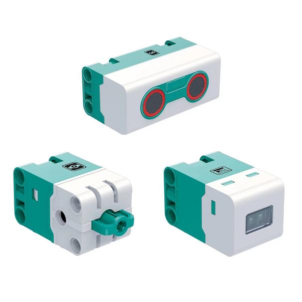 - Программируемые компоненты: 2 малых и 1 большой моторы, ультразвуковой датчик расстояния, датчик касания/давления, 2 ИК-датчика освещенности.