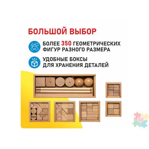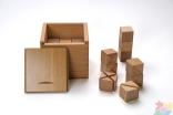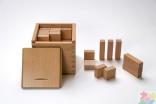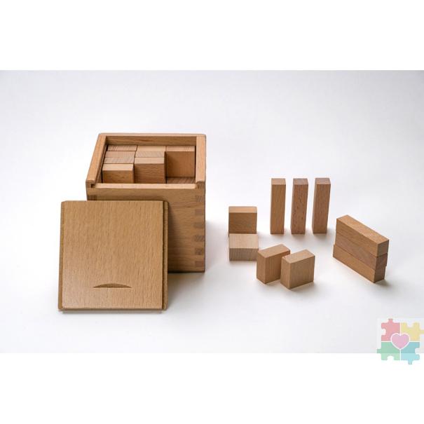 Четвертый: восемь плашек в виде прямоугольных брусков, которые также складываются в куб - «куб из брусков». Дети превращаются в начинающих «строителей», обучаясь собирать из отдельных элементов цельный предмет.