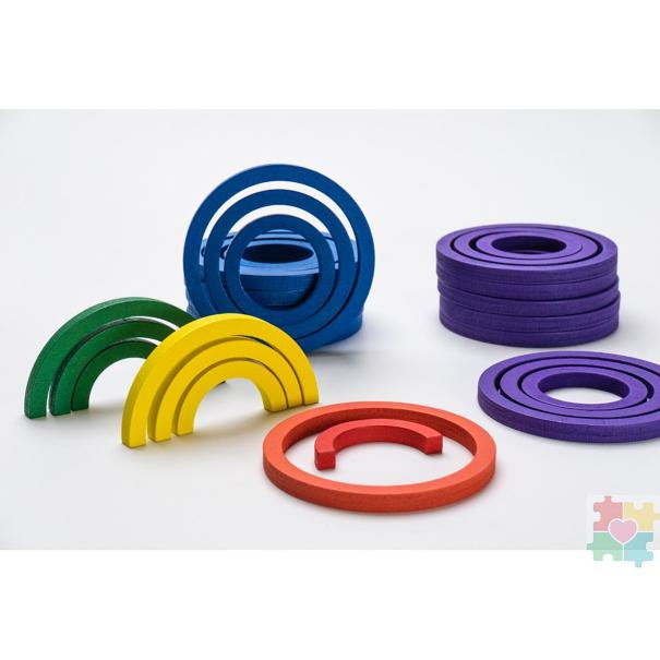 Пятый (кубики и призмы) и шестой (кубики, столбики, кирпичики), так же, как и четвертый модуль, развивают творческие способности ребенка к конструированию. Большое количество деталей разного размера и формы (39 в пятом и 33 в шестом наборах) позволяет реализовать самые смелые строительные фантазии малыша.